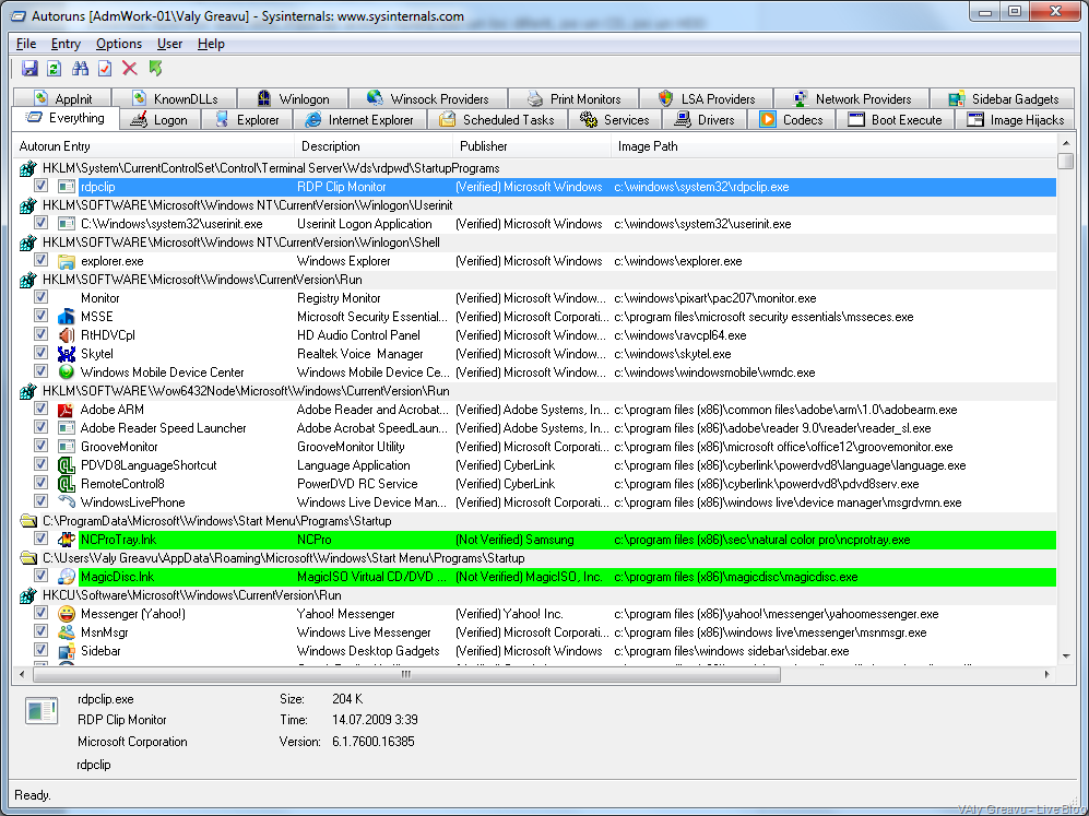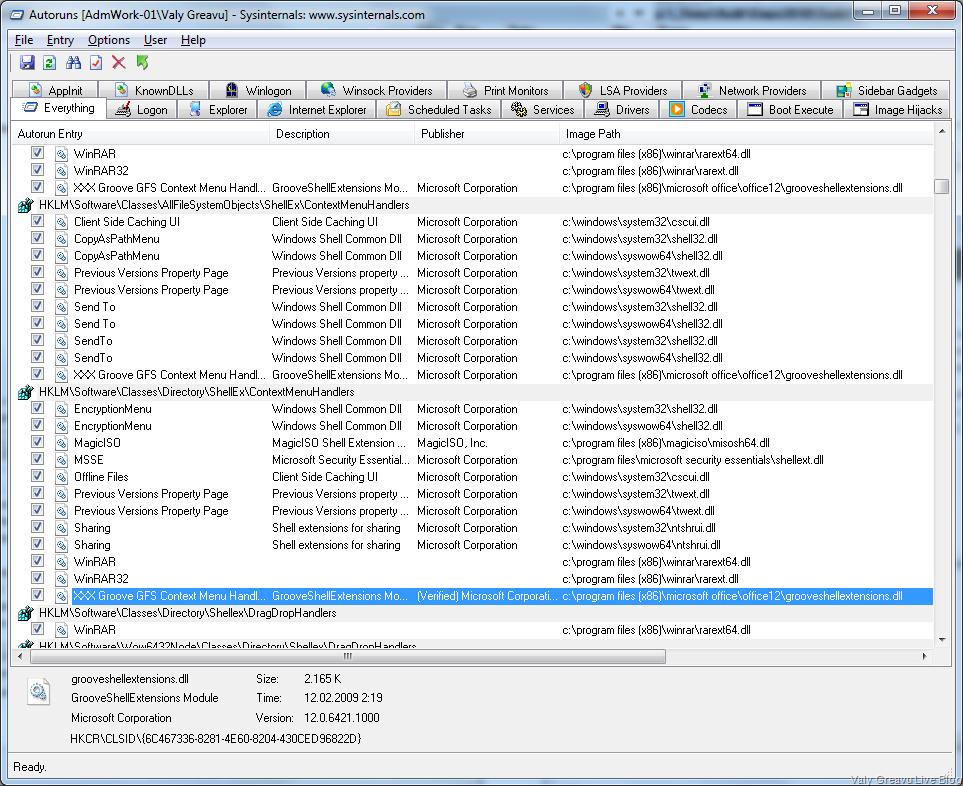 Una din funcțiile principale ale Autoruns este aceea de verificare și validare a DLL-urile utilizate de anumite aplicații sau servicii. Este binecunoscut faptul că hackerii și aplicațiile troian modifică DLL-urile de bază ale aplicațiilor și serviciilor, de aceea este recomandat să le ținem permanent sub observație.