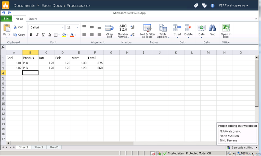 • Cand se editează simultan o celulă, ultimul care scrie în ea este cel care confirmă.