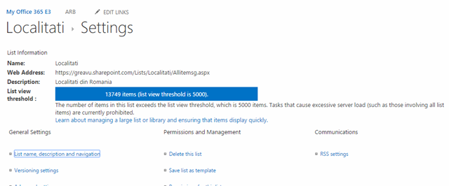 Atenție! Din cauza setărilor de performanță cu privire la limitarea numărului de înregistrări dintr-o listă, nu veți putea să vedeți toate înregistrările din listă.