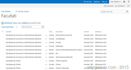 Alte funcționalități și configurări sunt legate de filtrarea pe listelor în așa fel încât să nu se permită vizualizarea elementelor din exterior iar fiecare secretar sau bibliotecar să poată vedea doar fișele sale.