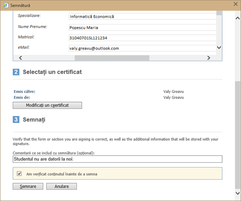 Proces de semnare în browser este disponibil, din păcate pentru unii, doar în ultimele versiuni de Internet Explorer. Formularul se poate deschide în Chrome dar nu poate fi semnat.