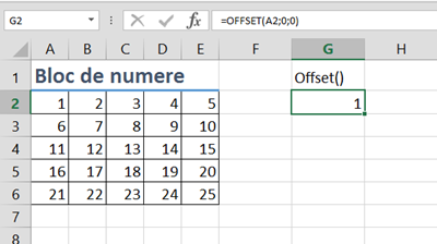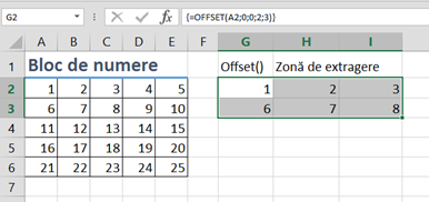 =OFFSET(A2;0;0) va extrage valoarea 1, valorile 0;0 precizând că se va extrage valoarea exact din celula de referință.