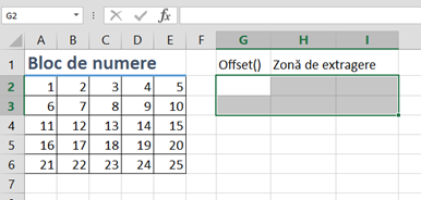 OFFSET() este o funcție complexă care poate fi folosită în căutare în mod singular (extrage o singură valoare) sau în mod array pentru extragerea mai multor valori dintr-un bloc de celule.
