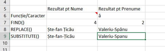 Funcția SUBSTITUTE() poate foarte utilă pentru corectarea textului în operațiunile de import sau după caz.