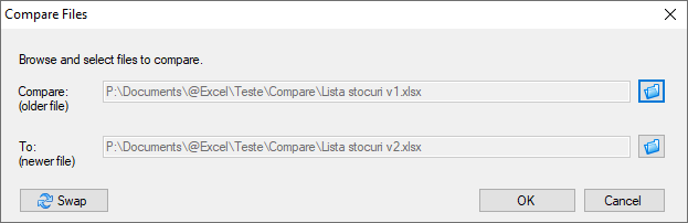 După deschidere apăsați butonul Compare Files și căutați cele două fișiere pe disc.