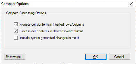 În cazul în care fișierele Excel sunt protejate cu parole la deschidere, se pot gestiona parolele de acces cu ajutorul butonului Options, secțiunea Passwords.