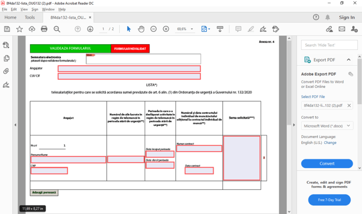 Pare puțin de muncă dar este mai simplu decât să faci fill in linie cu linie în PDF față de un export de salariați/înregistrări dintr-o bază de date.