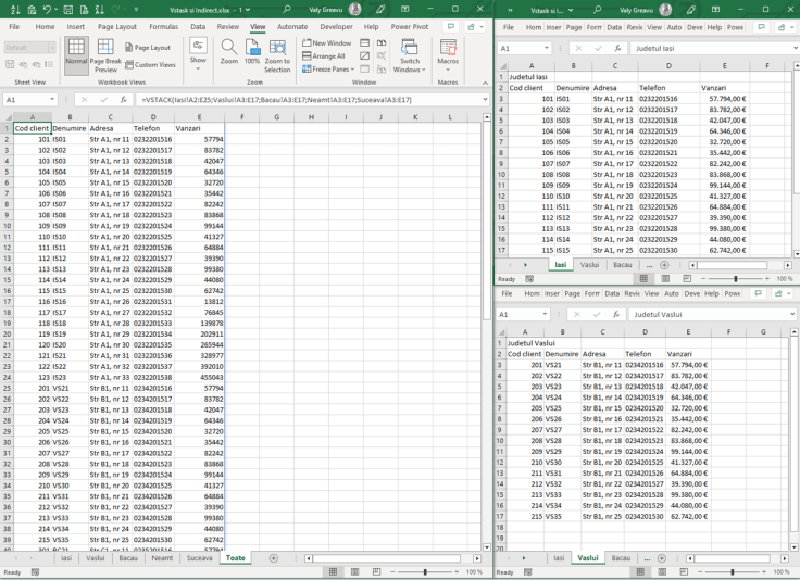 Ceea ce văd eu cu adevărat puternic în utilizarea VStack este reprezentat de simplificarea operațiunilor de consolidare. Avem mai multe tabele în mai multe foi de calcul. Pentru a centraliza toate datele într-un singur tabel, avem destul de multe variante. Dintre toate acum Vstack devine mai simplu chiar decât operațiunile cu Power Query