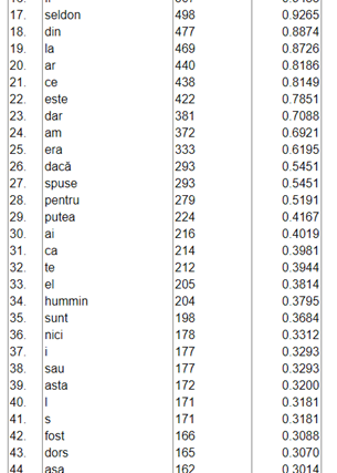 În funcția prezentată, definesc o variabilă rezult care va prelua datele sortate din următorul calcul, și care este filtrată pe ultima linie cu un FILTER, prin care exclud cuvintele mai mici sau egale cu 3 caractere (a, și, la etc) și cele care sunt de tip număr.