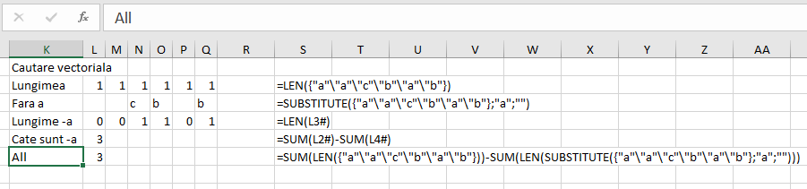 Ca să pot calcula totuși într-o singură funcție avem nevoie de MOD(ModK * ModSet; lungimea șirului). Funcția din G2 este în exemplul meu: =MOD(E2*F2;C2)