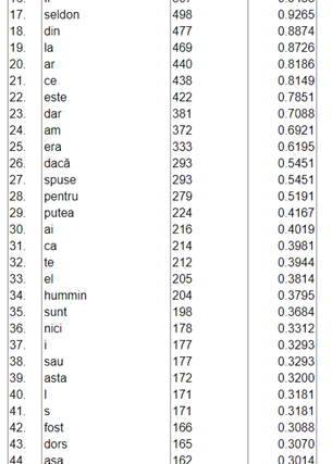 Diferența de apariții pentru personajele principale este destul de mică, ceea ce îmi confirmă faptul că metoda aplicată în Excel este fezabilă. Problema este consumul de resurse și procesor pentru a interpreta cantități mari de text, Excel nefiind un instrument dedicat pentru analize volume mari de date.