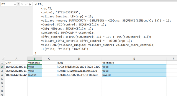 În același exemplu, în B11 am verificat și dacă ghilimelele sunt deschise și închise corect.