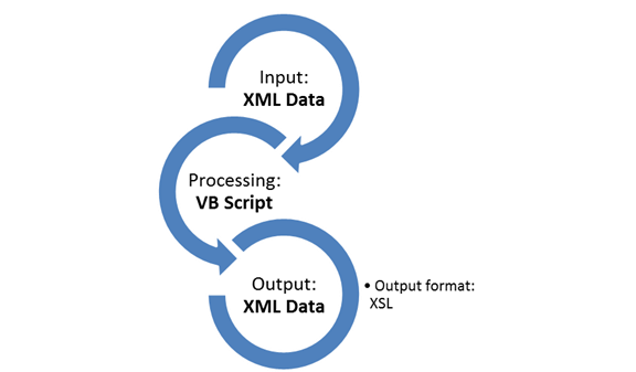 Fișierul de prelucrare (winDokm v1.vbs) se bazează pe limbajul de scripting VB Script, care se regăsește în toate versiunile sistemelor de operare Windows. Logica de prelucrare constă în specificarea fișierului de intrare a claselor WMI și pe bază de funcții specifice generarea unui fișier XML de ieșire.