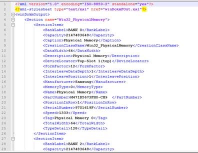 În mod formatat cu XSL (winDokmFOut) fișierul de ieșire poate arăta în formatul următor: