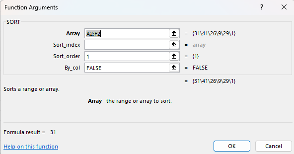 Lucrurile nu mai sunt la fel de simple pentru că funcția sort nu mai funcționează așa cum ne-am aștepta. În Excel, SORT() este dedicat implicit valorilor de pe o coloană, iar ca să ducem o linie în coloană folosim TRANSPOSE().
