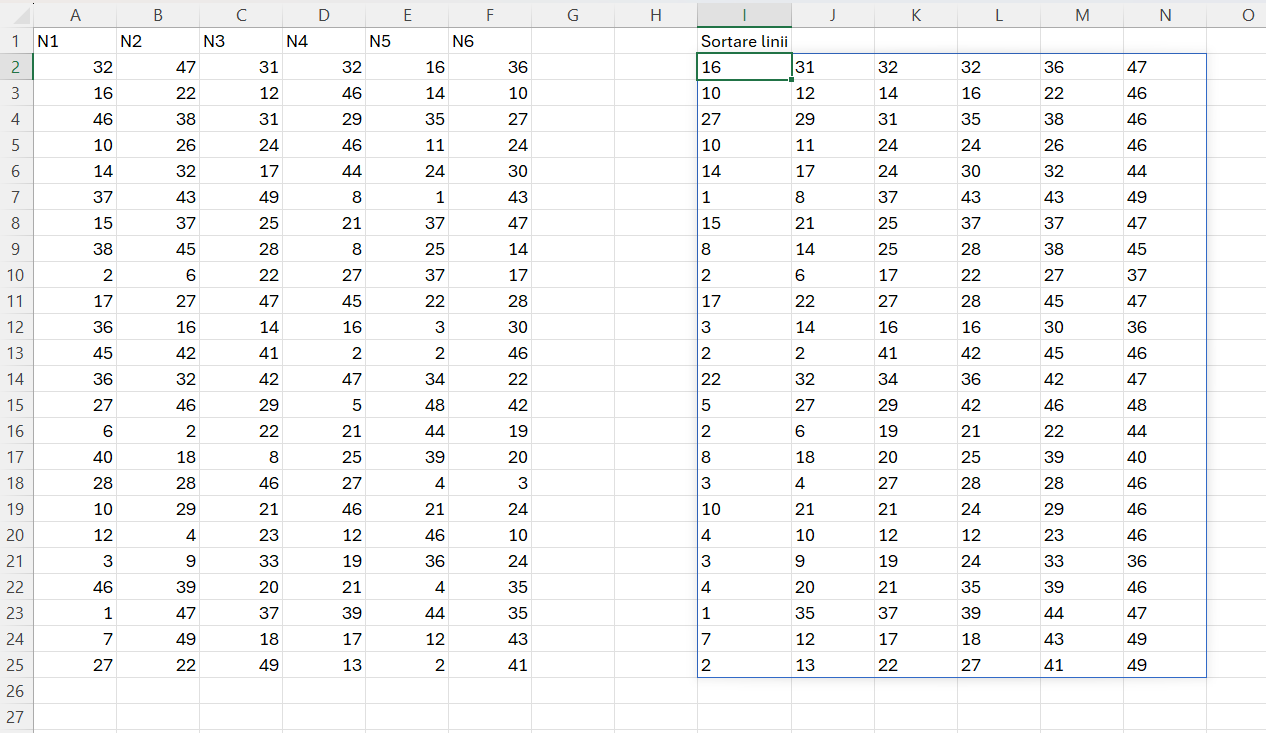 Și totuși dacă am dori să sortăm toate valoarile crescător pe fiecare linie în parte?