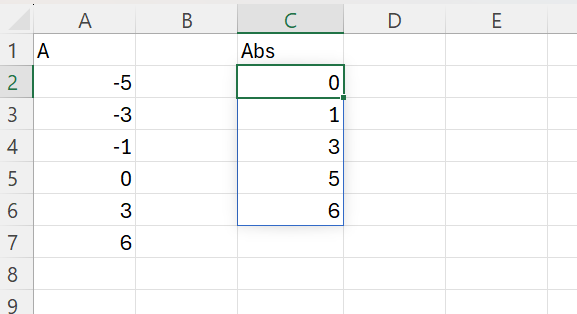 în C2 am utilizat formula: =SORT(UNIQUE(ABS(A2:A7)))