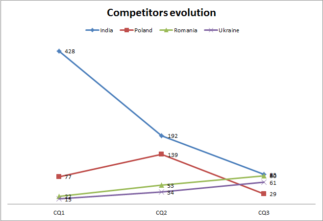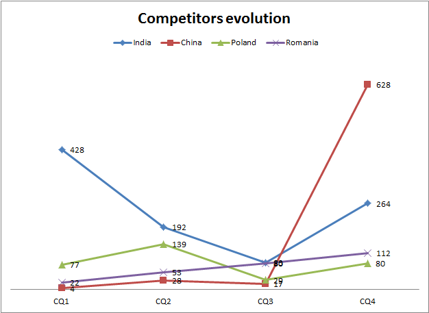 Biggest surprise for Quiz 4 was the number of competitors from China and Netherlands. There is great revenue for Chinese students, a country with big tradition in IT challenge, and numerous positions on Final Podium.