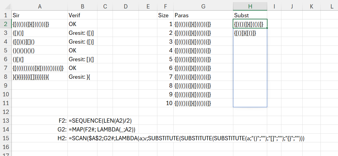 subst;SCAN(sir;paras;LAMBDA(a;v;SUBSTITUTE(SUBSTITUTE(SUBSTITUTE(a;"()";"");"[]";"");"{}";"")));