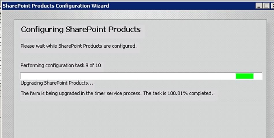 Pasul 6 – Rularea wizard-ului de configurare… în care aparent nu am avut prea multe erori doar faptul că timpul de execuție depășea de multe ori 100% ajungând în repetate rânduri pe la 100,81% :)